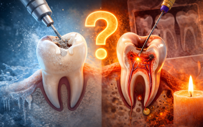 پوسیدگی بین دندانی معمولاً دیر علامت میدهد. وقتی درد شروع میشود، اغلب پوسیدگی به عاج رسیده یا حتی به عصب نزدیک شده است. در این مرحله ممکن است به جای یک پرکردگی ساده، نیاز به درمان ریشه ایجاد شود.